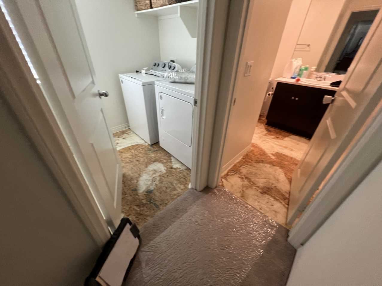 We conducted a thorough on-site assessment to identify the extent of water damage, including potential moisture trapped behind walls and cabinets. Our team prepared a detailed estimate for complete mitigation and repair, which included making necessary drywall cuts, removing damaged materials, and addressing areas at risk for mold growth. We outlined a full repair plan to restore the affected laundry room, bathroom, and kitchen, ensuring the property could be returned to its pre-loss condition.