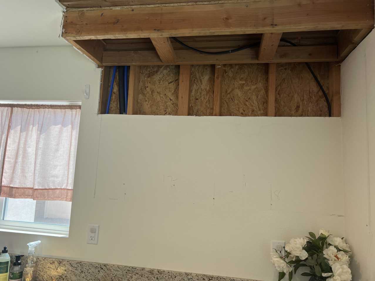The customer contacted us after a washer drain line disconnected, which caused water to overflow from the upstairs laundry room into both the upstairs bathroom and the kitchen below. The insured had already hired Roto-Rooter for initial mitigation, but no drywall cuts or material removal had been performed. They requested a full assessment and estimate for mitigation and repair services, with concern about potential hidden water damage behind the kitchen cabinets.